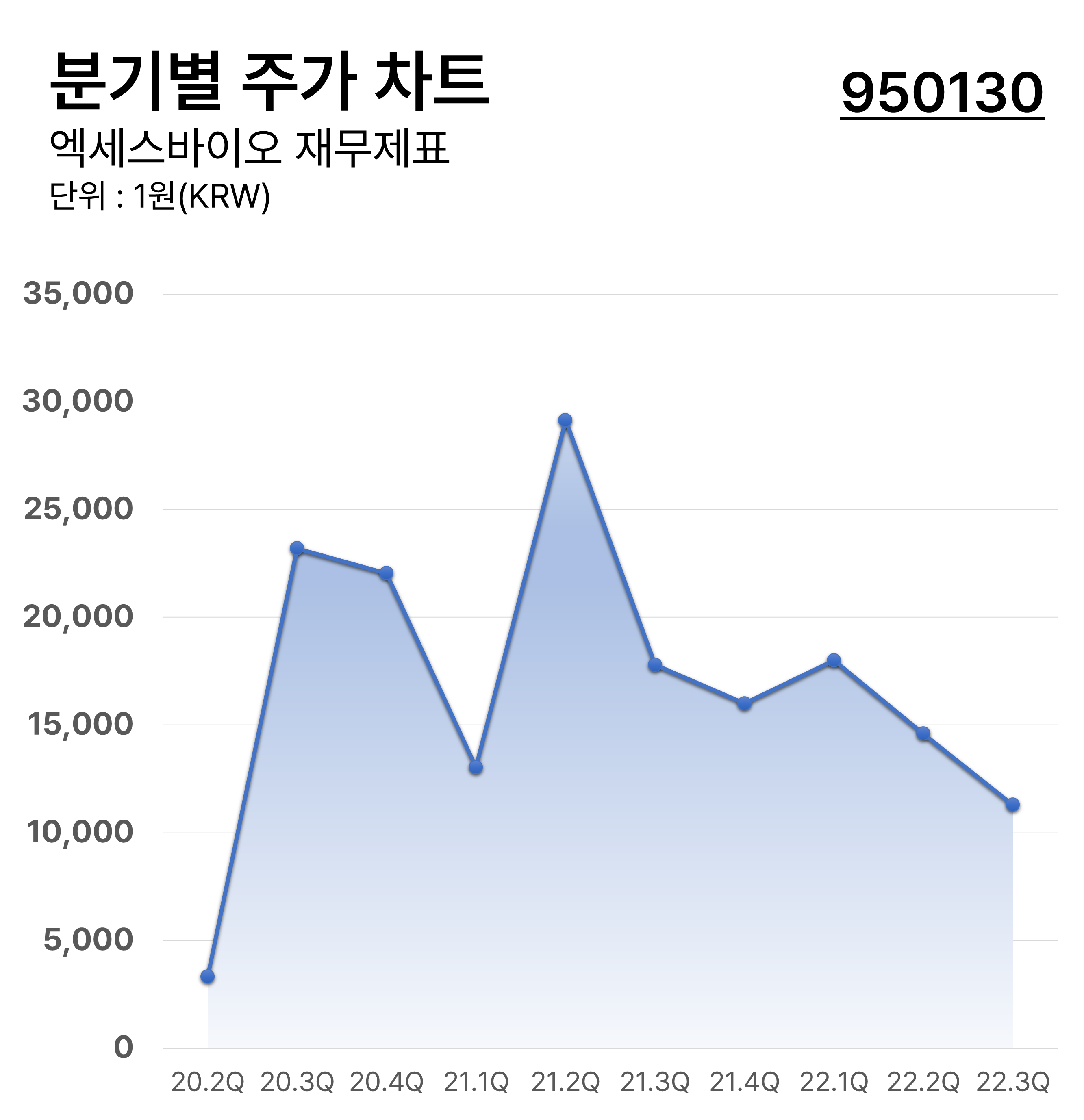 ์์ธ์ค๋ฐ์ด์ค์ 2020๋ 2๋ถ๊ธฐ๋ถํฐ 2022๋ 3๋ถ๊ธฐ๊น์ง ๋ถ๊ธฐ๋ณ ์ฃผ๊ฐ ๋ณ๋์ ๊ธฐ๋กํ ์ฐจํธ์ ๋๋ค. ์์ธ์ค๋ฐ์ด์ค์ ์ต๊ทผ ์ฃผ๊ฐ ๋ํฅ์ ์ง์์ ์ผ๋ก ์์น ์ถ์ธ์ ๋๋ค.