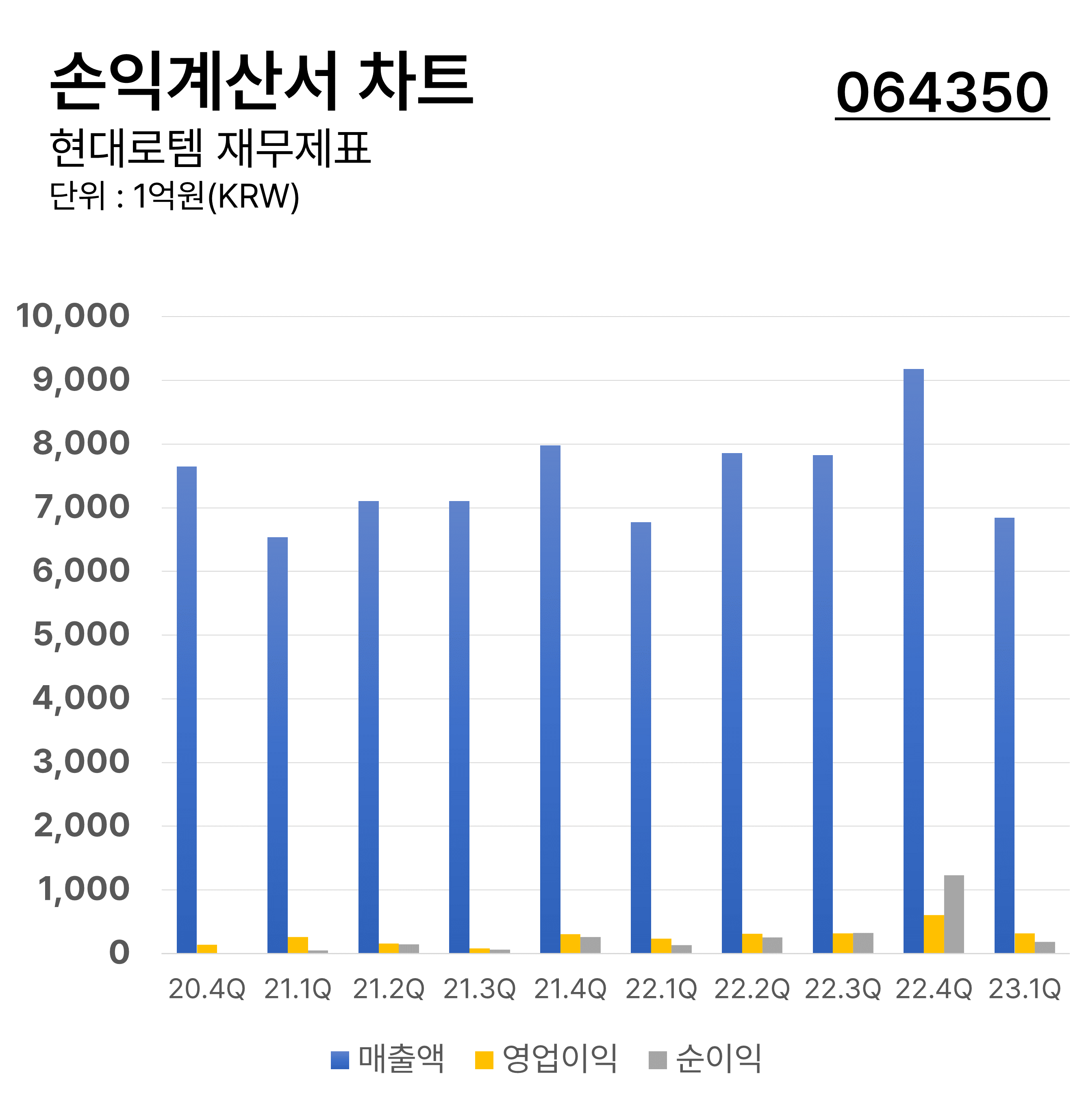 ํ๋๋กํ (064350) ์ฌ๋ฌด์ ํ๋ฅผ ํตํด ๊ธฐ์ ์ ๊ฒฝ์ํ๋์ ํ๊ฐํ๊ณ ์ด๋ฅผ ๋ฐํ์ผ๋ก ๋ณธ ๊ธฐ์ ์ ํฅํ ๋ฏธ๋์ ๋ํด ์์ํ๋ฉด์ ์์ผ๋ก์ ํฌ์ ๋ฐฉํฅ์ ๊ฒฐ์ ํ๊ธฐ ์ํ ์ต๊ทผ ๋ถ๊ธฐ๋ณ ์๋ฃ๋ฅผ ์ฐจํธ๋ก ์ ๋ฆฌํ์ต๋๋ค. ์ฃผ์ํฌ์๋ฅผ ๊ณ ๋ คํ ๋์ ๊ฐ์น ์๋ ์๋ฃ๊ฐ ๋์ผ๋ฉด ํฉ๋๋ค.