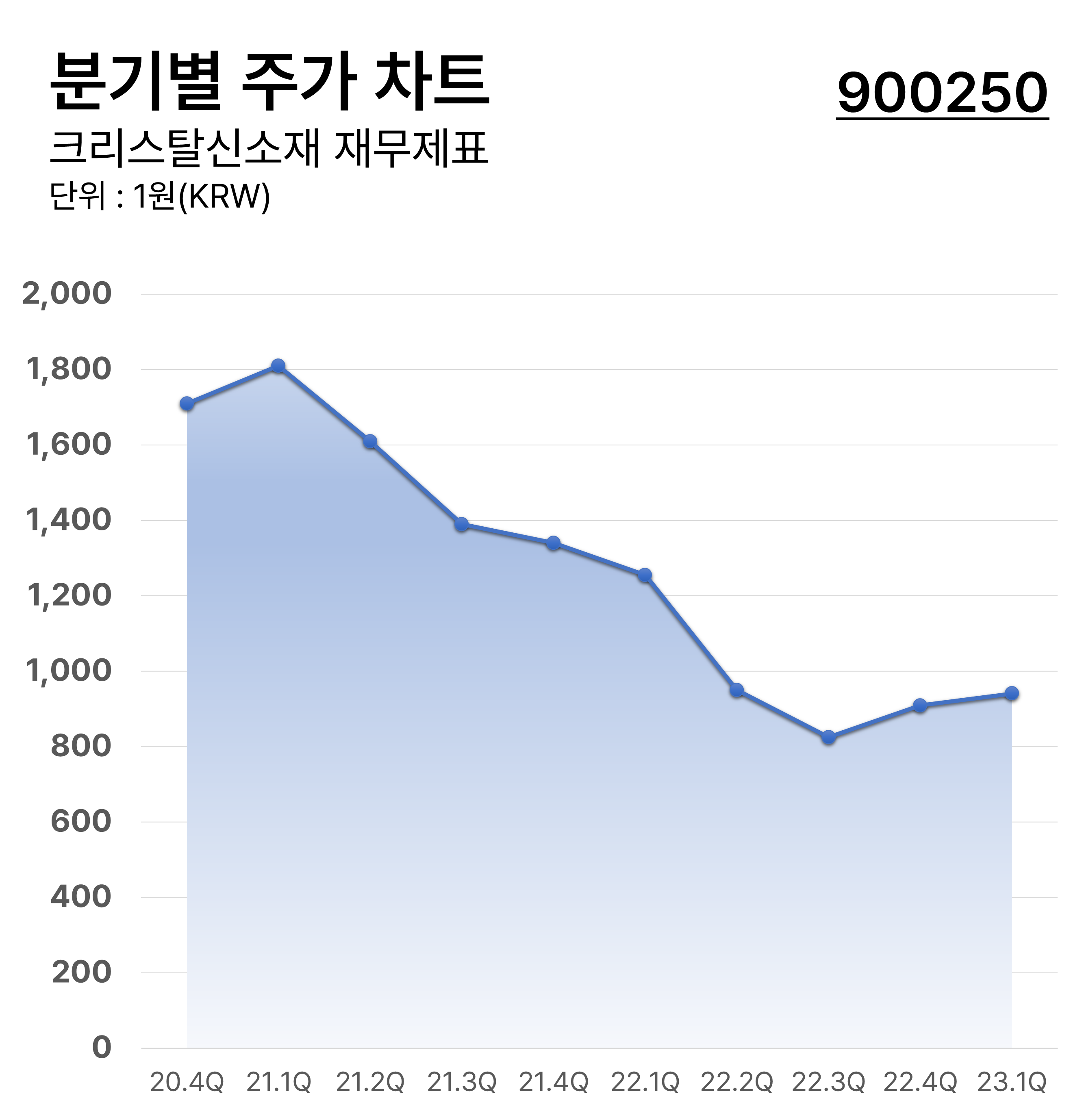 ํฌ๋ฆฌ์คํ์ ์์ฌ์ 2020๋ 4๋ถ๊ธฐ๋ถํฐ 2023๋ 1๋ถ๊ธฐ๊น์ง ๋ถ๊ธฐ๋ณ ์ฃผ๊ฐ ๋ณ๋์ ๊ธฐ๋กํ ์ฐจํธ์ ๋๋ค. ํฌ๋ฆฌ์คํ์ ์์ฌ์ ์ต๊ทผ ์ฃผ๊ฐ ๋ํฅ์ ์ง์์ ์ผ๋ก ์์น ์ถ์ธ์ ๋๋ค.