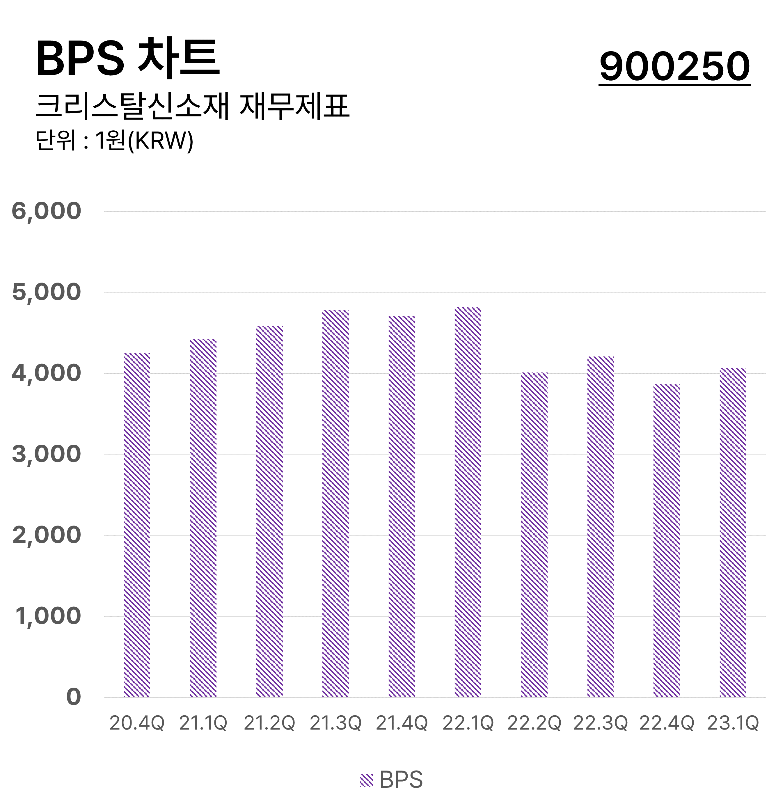 ํฌ๋ฆฌ์คํ์ ์์ฌ์ ๋ถ๊ธฐ๋ณ BPS ์ฐจํธ์ ๋๋ค. ์ฃผ๋น์์์ฐ(BPS)์ ๊ธฐ์ ์ ์๊ธฐ์๋ณธ์ ๋ฐํ ์ฃผ์ ์๋ก ๋๋ ์งํ์ด๋ฉฐ ์ฝ๊ฒ ๋งํด์ ์ฃผ์ 1์ฃผ๋น ๊ธฐ์ ์ด ๋ณด์ ํ ์๋ณธ์ ๊ณ์ฐํ ์งํ์ ๋๋ค.