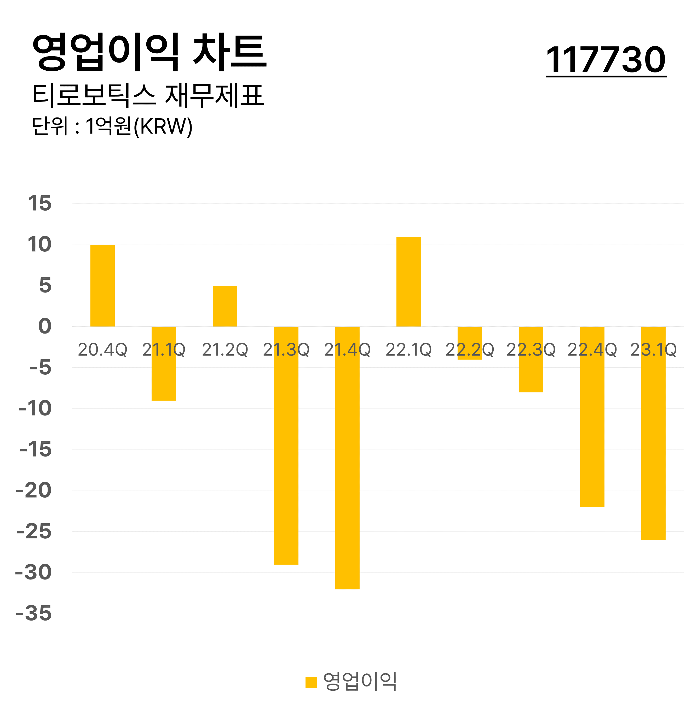 ํฐ๋ก๋ณดํฑ์ค์ ๋ถ๊ธฐ๋ณ ์์ ์ด์ต๋ฅ ์ฐจํธ์ด๋ฉฐ 2021๋ 2๋ถ๊ธฐ์ ์ต๋ ์์ ์ด์ต์ฆ๊ฐ์จ์ ๊ธฐ๋กํฉ๋๋ค. ์์ ์ด์ต์ฆ๊ฐ์จ์ด ๋ฎ์๋ ์์ ์ด์ต ์์ฒด๊ฐ ๋๋ค๋ฉด ๊ธฐ์ ์ ํฌ์๊ฐ์น์ ํฐ ์ํฅ์ด ์์ต๋๋ค. ํํ์๋ฃจ์ ์ ์์ ์ด์ต์ฆ๊ฐ์จ์ ์ต๊ทผ ๋ฎ์์ง ์ถ์ธ์ ๋๋ค.